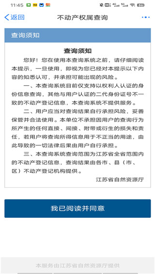 6、阅读查询须知,点击我同意;