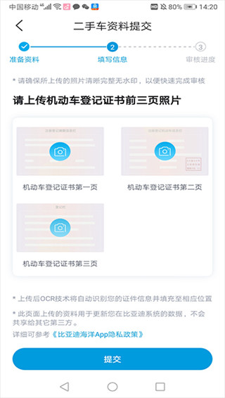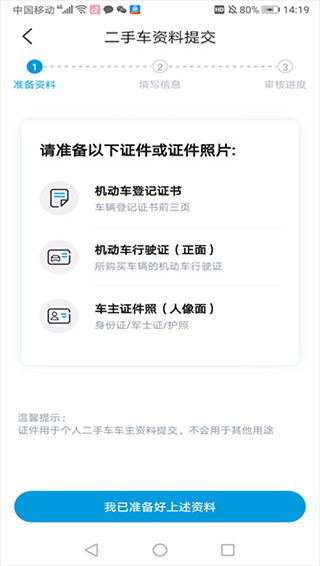 4、二手车个人车辆也可在上面提交相应资料进行认证