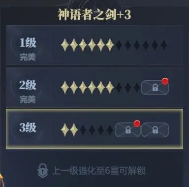 消耗【时间之石】能够强化星级,每一级升级到6星且穿戴的装备套装达到要求后,可以解锁下一个强化等级;
