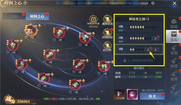 2、入口:游戏右下方【装备】→【宝石】→【时间之心】