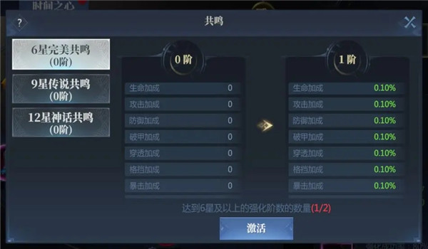 当强化到6星、9星、12星的装备数量达到指定要求(2、4、6、8、10个)时,可以激活强化共鸣。每次共鸣都可以增加一定战斗力哦!