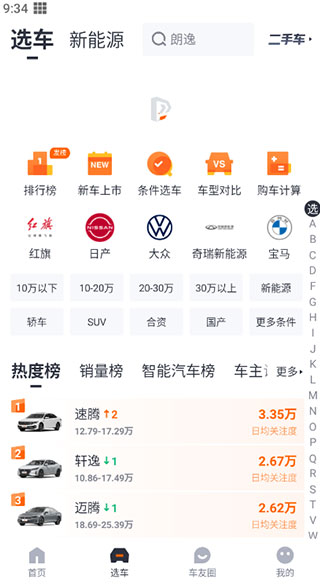 条件选车,按价格、级别、排量等筛选,找您所想