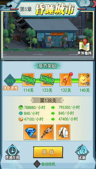 一、主线关卡1、照妖镜闯关:每消灭三波敌人,玩家就能挑战BOSS。击败BOSS后,可获取丰富经验值,让你的自动闯关体验无法停歇!