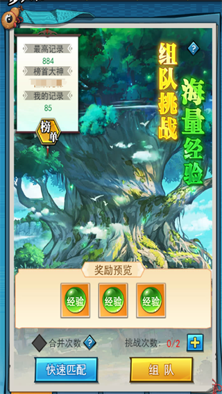 1、经验神树为多人副本模式,需三人组队共同挑战。