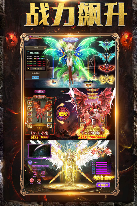 1、支持上千人同屏作战,战斗场面宏大,一技能可满屏秒杀敌人,体验爆炸性的战斗快感。2、游戏内设有多样的炫酷坐骑和强力的神器,玩家可以在战场上拾取这些装备,以助力战斗,轻松过关。
