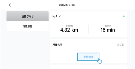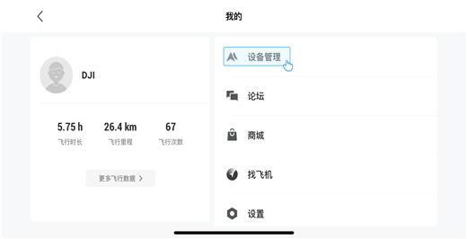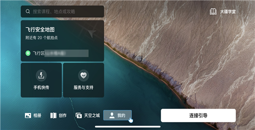 1. 打开App,登录账号,并连接遥控器与飞行器,连接后点击【我的】 ( DJI Avata 系列需将飞行眼镜连接至移动设备,并在移动设备端的应用登录账号再按步骤操作);