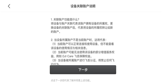 3. 选择【关联账号】,阅读“关联说明”后点击【下一步】;