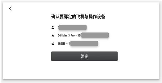 4. 核对需绑定的账号与机身序列号,点击【确认】,即可完成飞行器与账号的绑定。