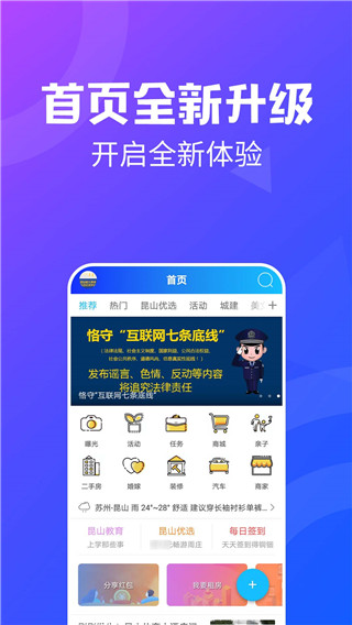 1、网络热点:每日热点,个性化关心,昆山城事,尽在这里;2、活动:关心活动管理看板,全新活动享不断,更有各种各样巨奖即可领取;