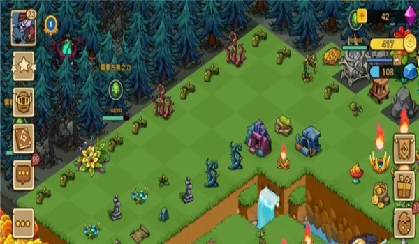 魔法圣坛的作用是净化解锁土地,同时还可以产出魔法结晶;地精洞穴的作用是产出宝石碎片和金币,同时还可以获得免费宝箱、蛮荒宝箱;而枯草主要是采集净化树种子。
