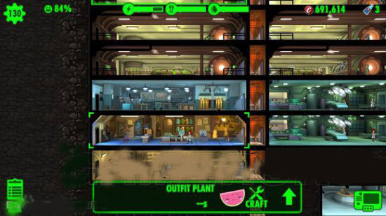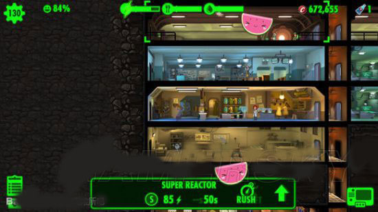 ①点击例如核电站、花园、水站的“生产房间”,发现如移动版相同,生产房间的状态栏与服装工坊的状态栏叠加在一起。而且服装工坊的在下方,这时候不能建造服装,但是1可乐制造状态不会消失。