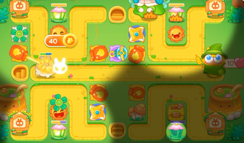 3、在游戏的中段,您应在中心位置再建造四座卡牌炮台并对其进行升级,根据战场上的实际情况调整火力,专注于击破关键的障碍物。