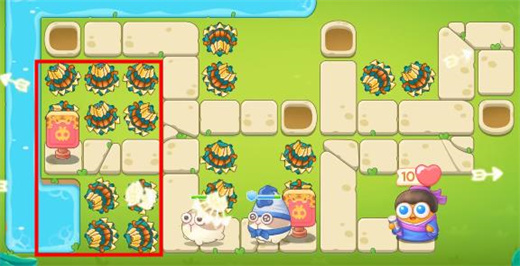 3、到第三波基本四周障碍物全部清理干净,在右上角造分裂箭清理剩下的道具。