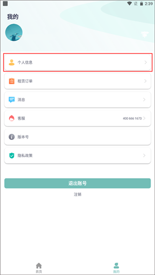 1、选择并切换到【我的】板块,点击上方的“个人信息”。