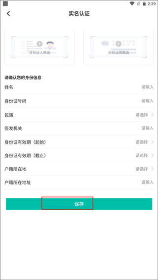 3、填写你自己身份证件上的信息,最后点击保存即可。