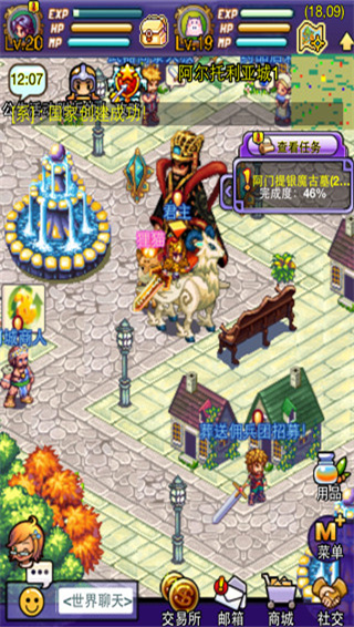 帝国王者归来手游最新版是一款像素风格的角色扮演类游戏,该手游中有着众多性格鲜明的角色,游戏剧情也丰富精彩,同时还综合了不同地域的文化特点,每个地域拥有不同的角色职业供玩家选择。在这里,玩家可以加入或者创建一个国家,同国家中的玩家一同参加国战获得资源,体会共同合作游戏乐趣。同时游戏还开启了摆摊功能,玩家可以摆摊售卖货物,也可以在拍卖场中自由拍卖,获得一定的收入来源,如此才有足够的资源养成我们的角色。