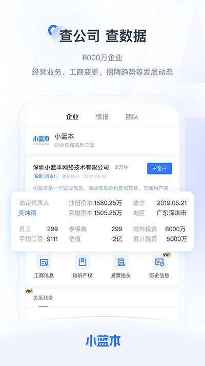 小蓝本企业查询app是一款由深圳小蓝本网络技术有限公司企业信息查询软件,致力于为用户打造透明的企业信息。对于想要找工作的用户而言,你可以在这里看到企业的信誉值,评分、公司地理位置、公司介绍、还可以查看公司的招聘情况等信息,快速帮助用户了解企业信息,做出求职选择。