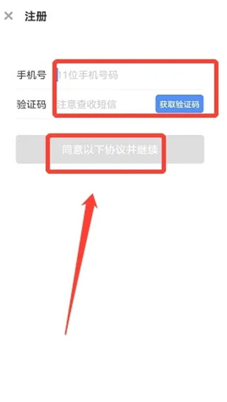 接着,在页面上填入手机号和验证码,点击【同意以协议并继续】,完成注册。