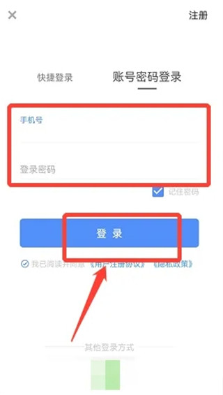 最后,注册好后,回到登录页面,输入手机号和密码,点击登录即可进去。