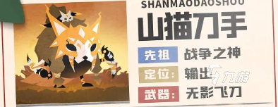 首先要给大家介绍的是目前游戏中的t0输出角色,他就是山猫刀手,在玩家之间流传着这样有一个短语,做山猫飞刀,刀刀致命,这也代表着玩家门对于他输出强度的认可,他的五维上攻击距离是满格,攻极也将近满格,攻速也不错,做为一个远程输出这个面板是相当出色的,他的先祖是战争之神,武器是无影飞刀,在战斗中他可以向敌人投掷多把飞刀造成伤害,如果投掷的飞刀造成了暴击,那么就会对敌人在丢出一把飞刀,这把飞刀伤害非常爆炸,可以打击弱点造成致命伤害,这个致命伤害还可以提升,在解锁了面具共鸣之后共鸣的等级越高,致命飞刀的伤害也就越高。