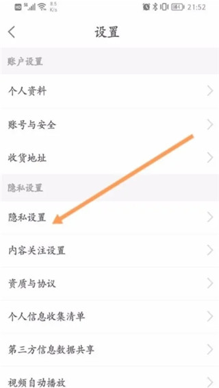 第三步,我们点击上面的隐私设置选项。