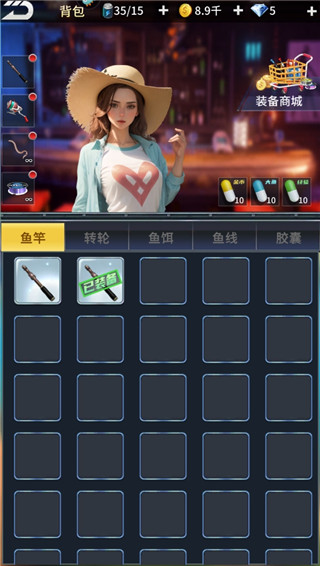 3、在背包中可以查看你的鱼竿鱼线等装备