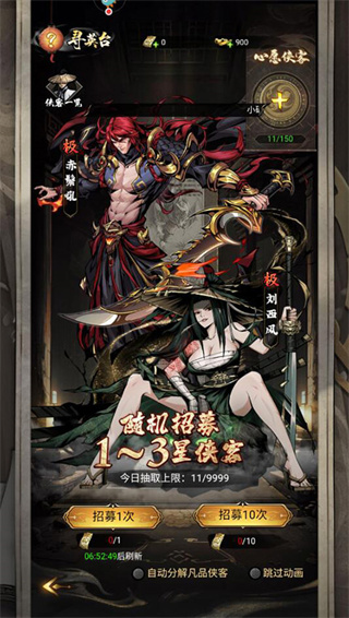2、新手可以通过招募获得极品侠客。