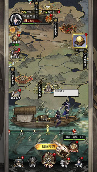 3、获得侠客后点击冒险,然后开始扫除障碍之旅。