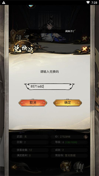4、接着输入你获取的兑换码:8571sdi2,点击确定