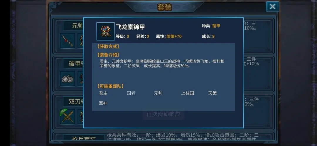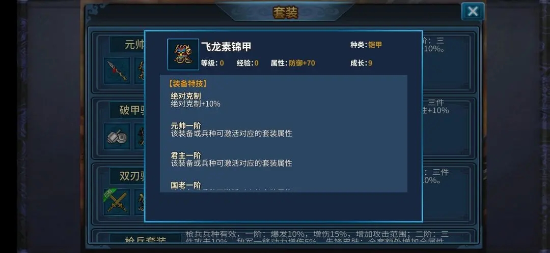 缺点:兵种限制很大,而且也是元帅套组件之一,并不优先。因为兵种限制,甲也难练。