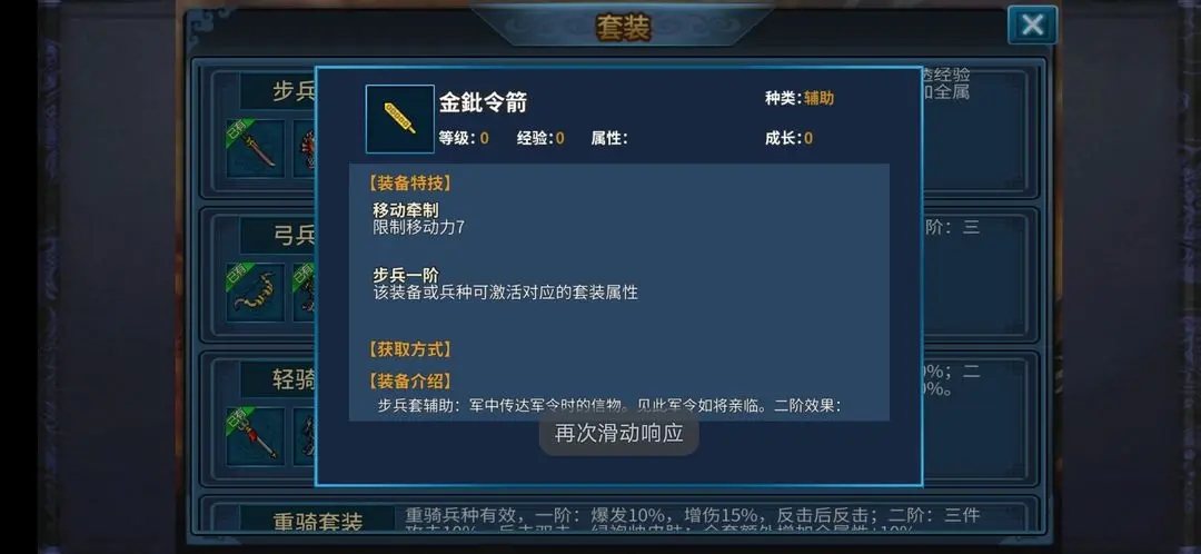 限制移动7(佩戴者九宫格范围的敌军移动减7)