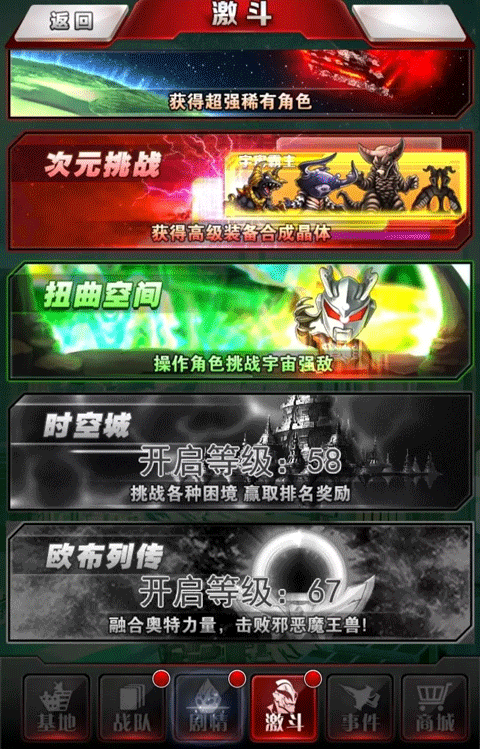 奥特曼系列olvivo版是一款收集全系奥特曼和怪兽角色的策略战斗游戏。在这款游戏中,玩家可以收集和培养多达数百种不同的奥特曼和怪兽角色,每个角色都拥有其独特的背景故事和成长路线。你可以通过战斗获得经验,提升角色的等级,解锁新的技能,甚至可以进行角色之间的组合,发掘出无限可能的战斗策略。