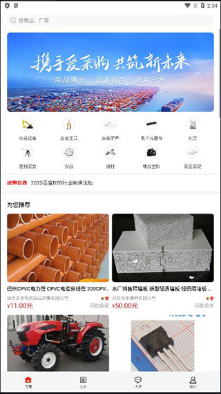 1、首先在本站下载打开百度爱采购app,进入首页面;