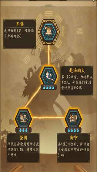 兵种之间存在克制关系。武将之间擅长带领的兵种也不一而同,让正确的将带正确的兵,才能实现效益最大化!以少胜多!