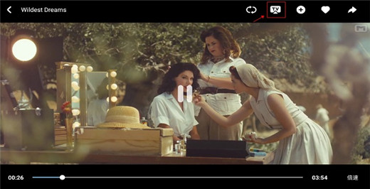 2、点击屏幕任意位置,便会弹出菜单选项,在右上方的位置找到“TV”图标,会自动搜索投屏设备,之后等待连接成功将MV投屏到电视或其他智能硬件设备。