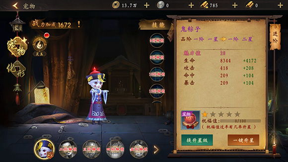 【趣味十足的形象设计】人物的形象设计上除了很写实之外,美这种元素是肯定不能少的,无论是人是鬼还是小粽子,或者是小僵尸,都是又可爱又真实的。第一眼看上去我还以为看到英叔了呢,林正英的形象实在是太深刻了!而且这个英叔还是倒骑驴的,这不是抢了张果老的伙计了嘛!不过还是蛮有意思的。升阶之后的坐骑非常霸气,有一种叫恶鬼抬棺的坐骑,真的超级帅气。