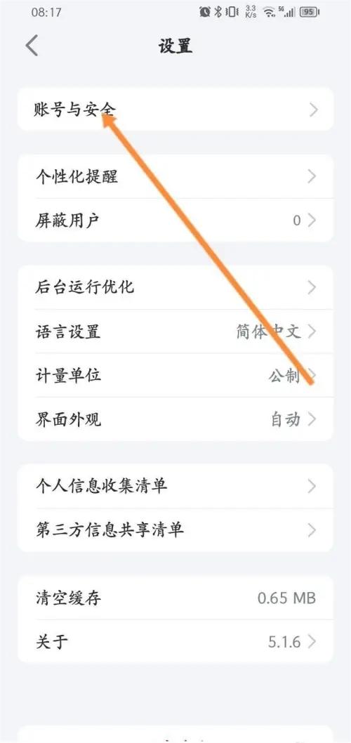 第一步,我们打开手机的软件,点击上面的账号与安全选项。