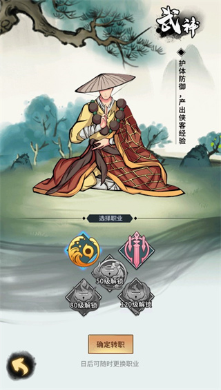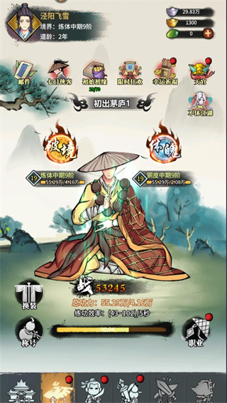初次进入游戏,玩家可以选择武神和剑仙两个职业武神擅长护体防御,并且修炼可以产出侠客经验