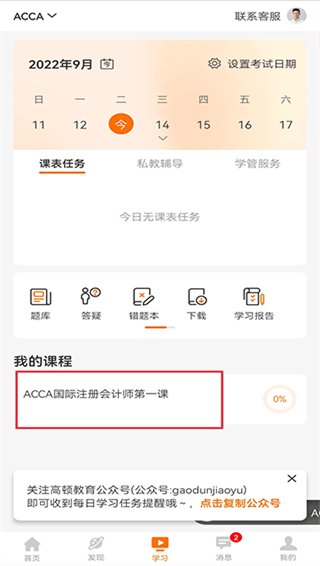 1、打开高顿网校app,在学习界面中点击要学习的课程