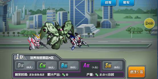 “殖民星争夺战”分为四大类殖民星——钻石矿区,金矿区,战斗数据研究所和培养剂贸易区,分别产出钻石,金币,战斗数据和培养剂。而每个殖民星又分为五个区域,依次为S、A、B、C、D区,品质越高单位时间的产量越高。