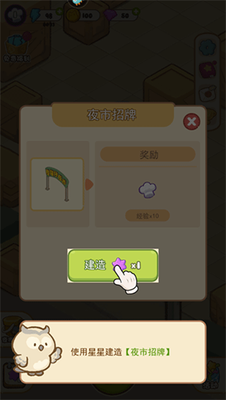 7、完成订单后可以获得星星,能够用来建造各种建筑设施