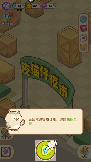 1、进入游戏,签约成为猫头鹰小镇夜市的市长