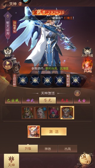 破天贯日:召唤射天后裔,对低血量造成秒杀。