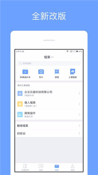 1、拥有多种丰富的档案管理功能,在档案中心设置了新建资料夹、照片以及上传档案等功能;2、随时随地使用、管理您的所有办公文件,携带手机即可开会、出差;