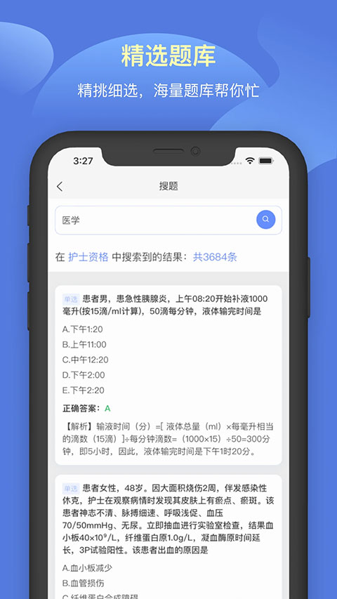 该应用界面简约干净,功能互动操作简单,包含了历年护士执业资格考试的大量真题,同时还会及时更新,让用户随时可以获得最新考点知识。同时,应用还有专业老师在线解答功能,用户随时可以得到一线专家的一对一专业解答,为考生提供最优质贴心的服务。感兴趣的用户快来本站下载吧!