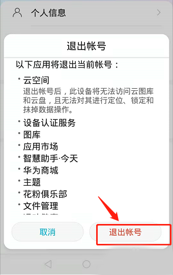 弹出退出帐号提示框,确定一下应用将推出帐号,继续点击推出帐号按钮即可。