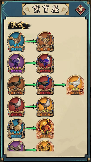 总结:普通斗鸡可以通过精品繁育或是不稳定繁育的方式进行提升,都有机会变成神级斗鸡,但如果主斗鸡已经是神级斗鸡,只能与同名斗鸡进行繁育,否则很有可能变为普通斗鸡。