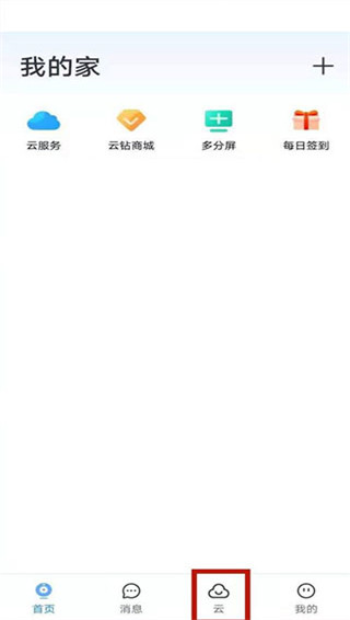 1、手机打开软件,登录首页点击云。