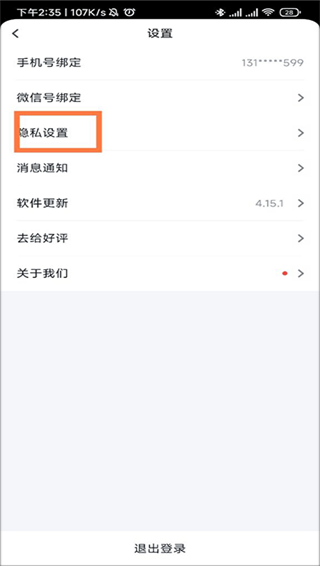 3、在设置界面找到隐私设置。