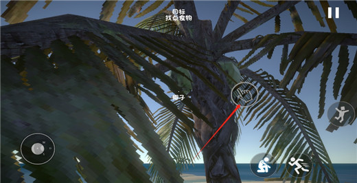 3、走到椰子树下,将镜头对准椰子,点击采摘即可